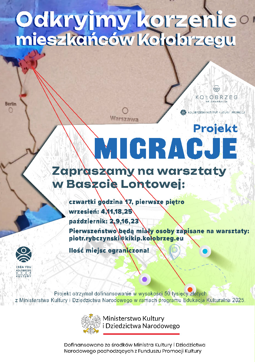 Projekt „Migracje”, realizowany przez Kołobrzeski Instytut Kultury i Promocji, ma na celu budowanie wspólnoty poprzez odkrywanie wspólnych korzeni i różnorodności kulturowej mieszkańców miasta. Dzięki inicjatywie organizatorzy chcą pokazać, skąd pochodzą przodkowie współczesnych kołobrzeżan.